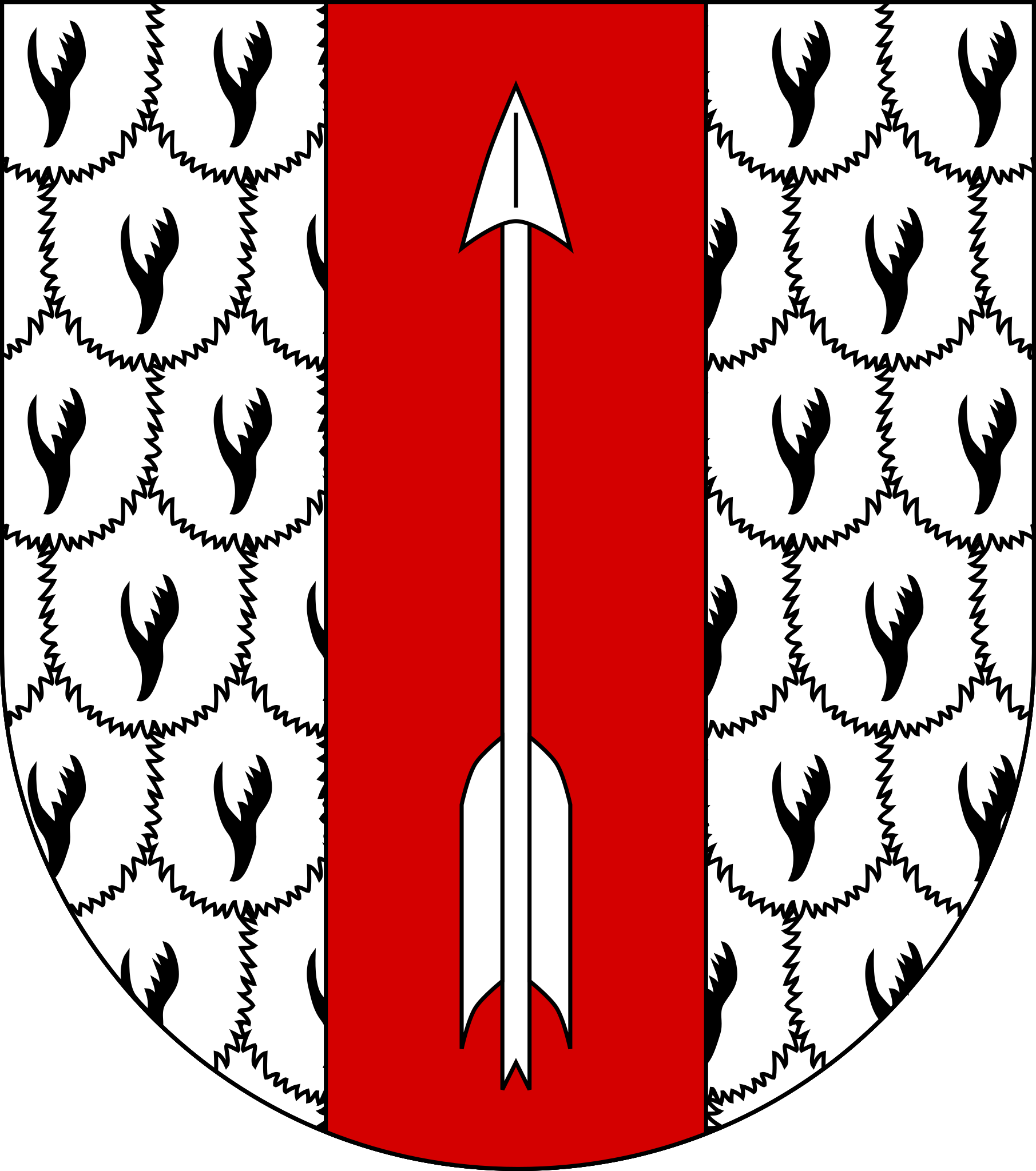 auf Kürsch ein roter Pfahl belegt mit einem silbernen Pfeil